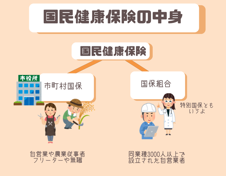 市町村国保は自営業や農業従業者、フリーターや無職の人などが加入。