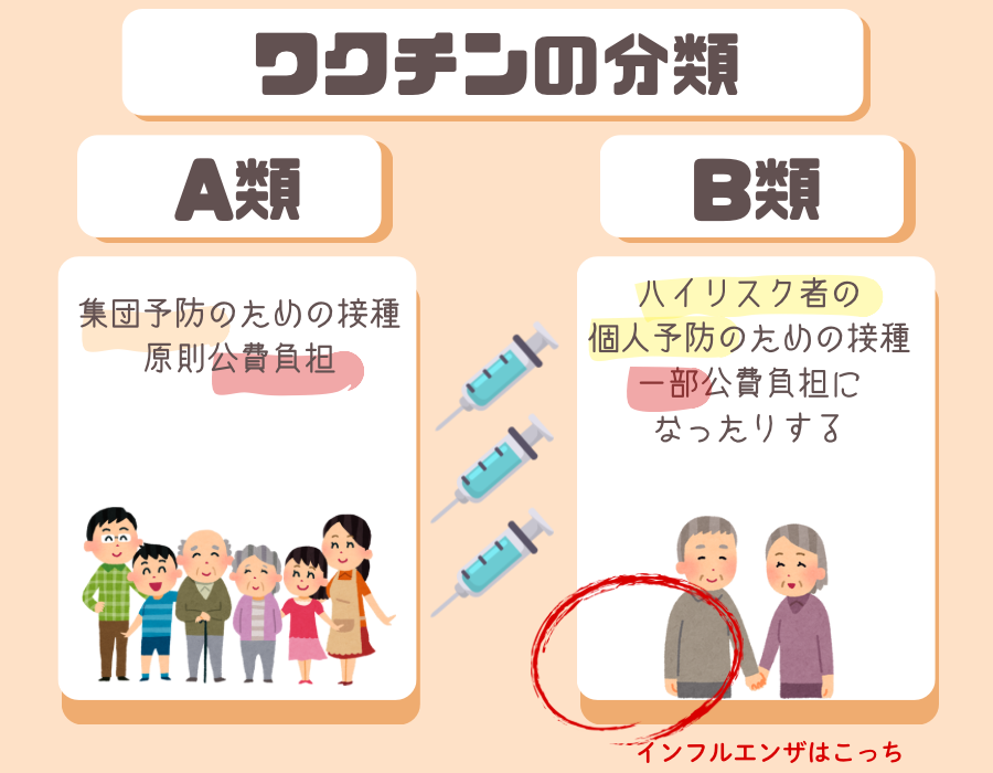 小学生くらいから受けられるインフルエンザワクチンはB類疾病。