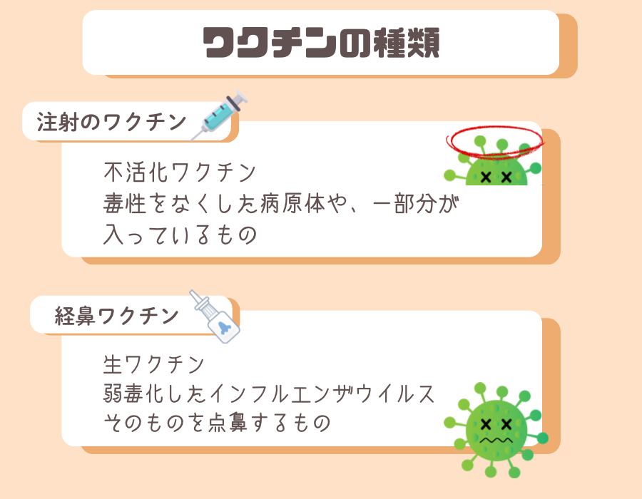 これは生ワクチンだから弱毒化した実際のインフルエンザウイルスを入れてるよ