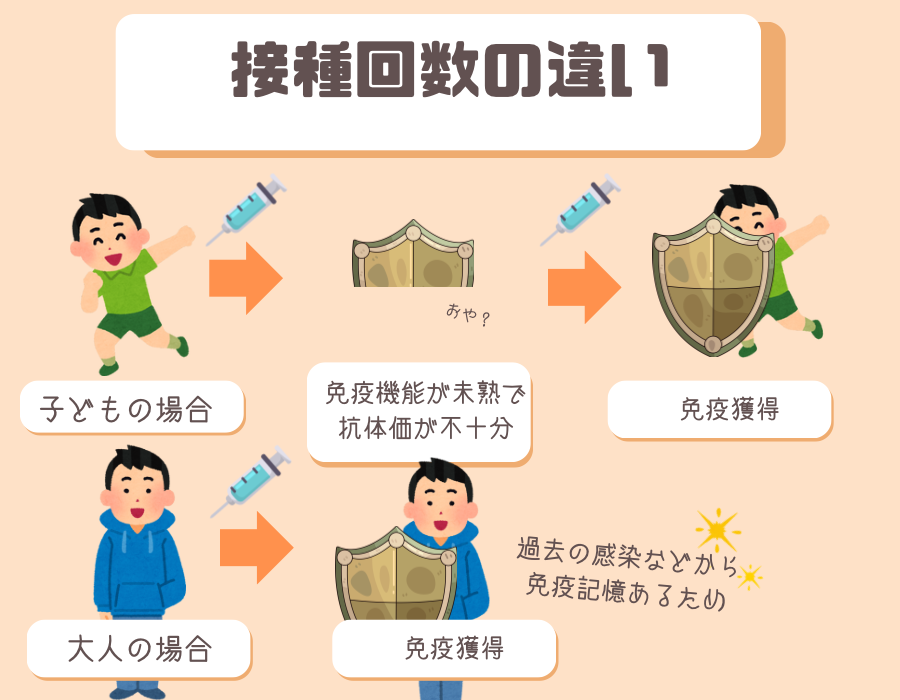1回目は体にワクチンを覚えさせて(免疫機能が未熟だから抗体が弱いみたい)